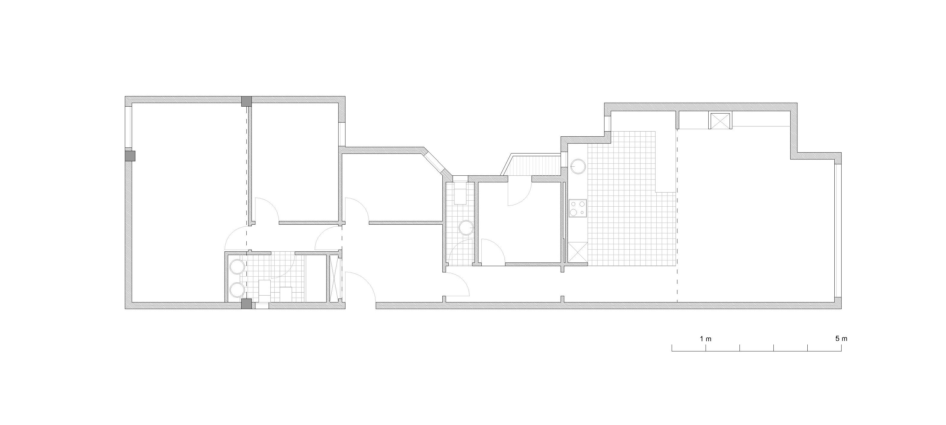 La intervención es mínima debido al bueno estado general de la mayoría de elementos y a las necesidades específicas de la clienta.